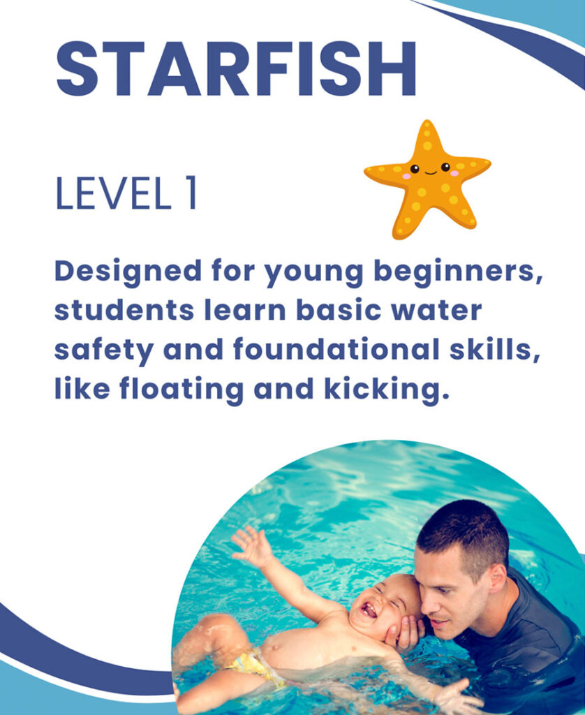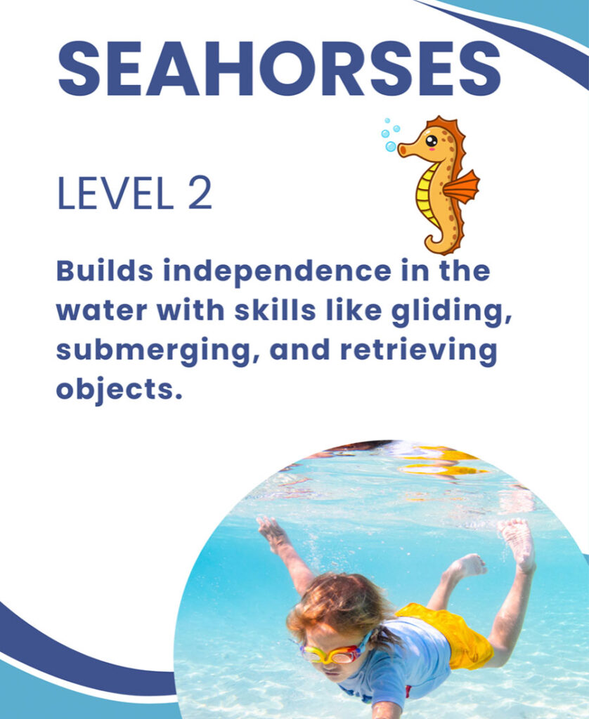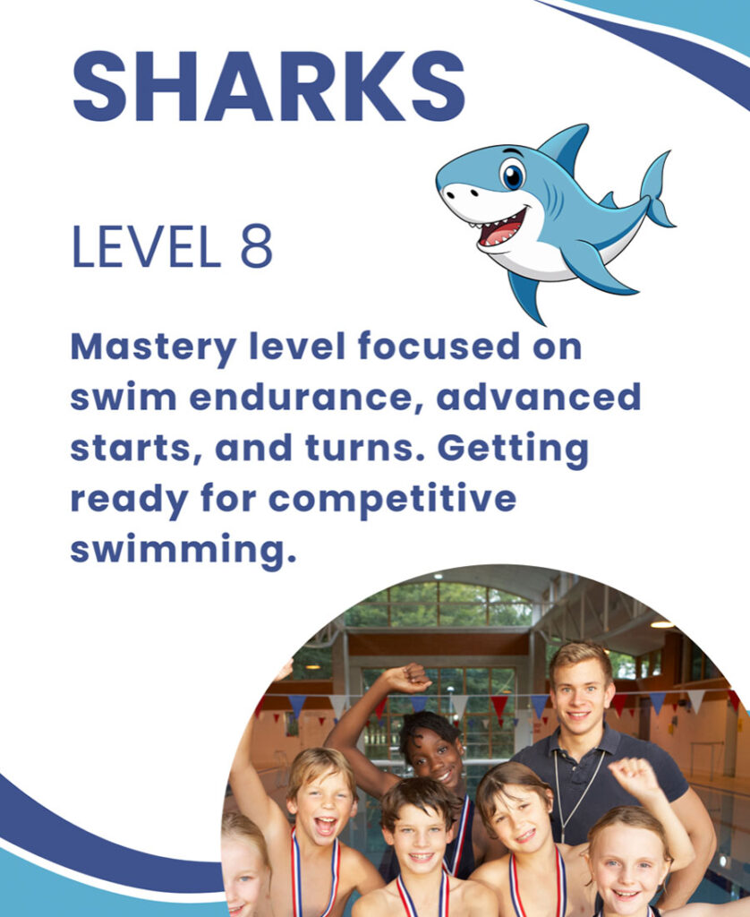 Group lessons for Levels 0-5 are 30 minute sessions. There are no more than two students per class in levels 1-5 and up to 4 swimmers in level 0. These lessons are priced at $40 per class.
